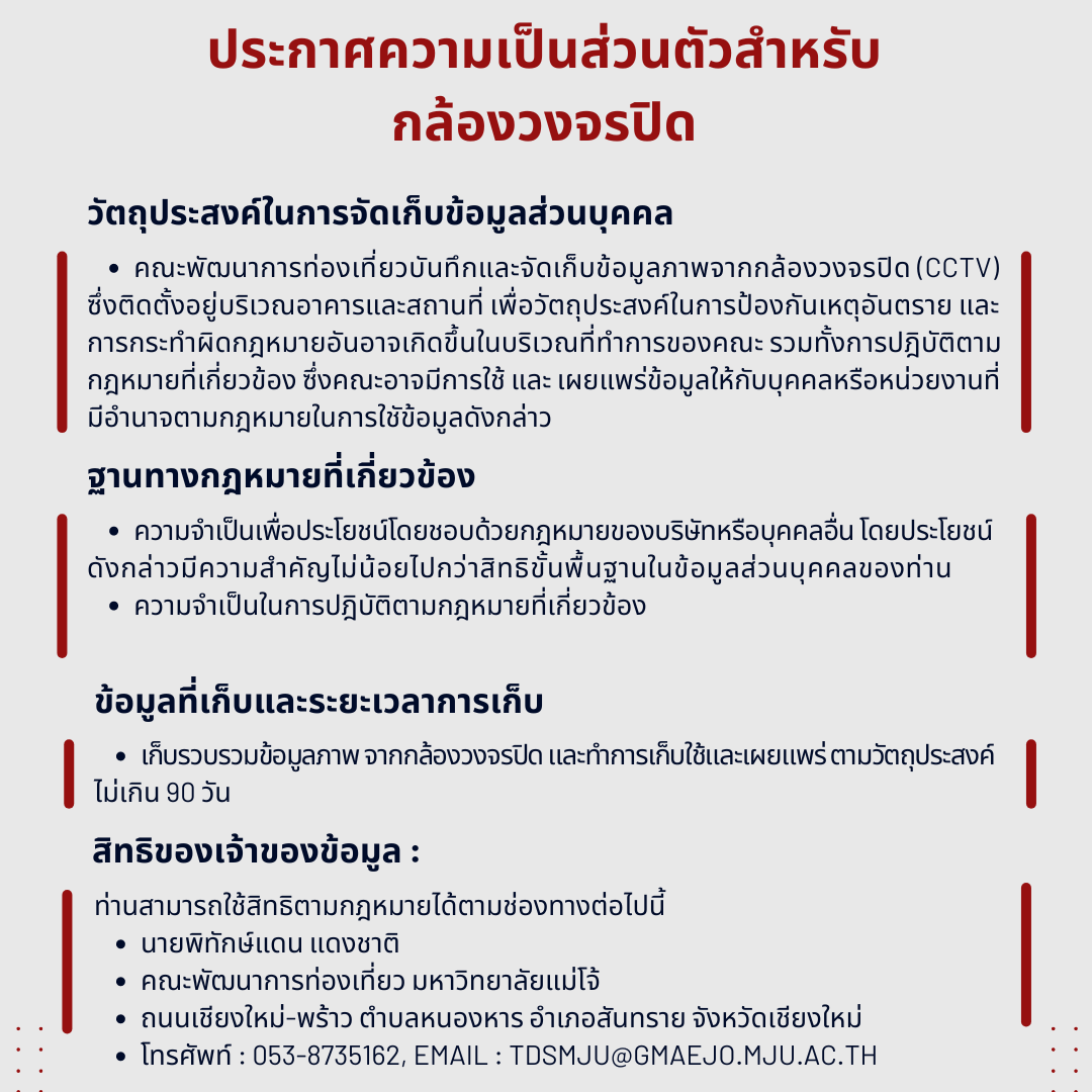 ประกาศความเป็นส่วนตัวสำหรับ กล้องวงจรปิด