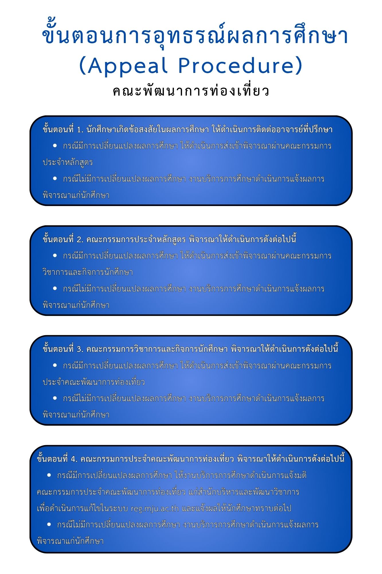 ขั้นตอนการอุธรณ์ผลการศึกษา (Appeal Procedure) คณะพัฒนาการท่องเที่ยว