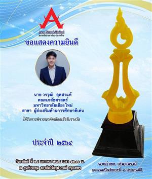 คณะพัฒนาการท่องเที่ยว ขอแสดงความยินดีกับศิษย์เก่าคณะพัฒนาการท่องเที่ยว รุ่น 21 (แม่โจ้79) คุณวรวุฒิ อุตสาแท้ ตำแหน่งพนักงานปฏิบัติงาน (ด้านพัฒนาคุณภาพนักศึกษา) คณะเภสัชศาสตร์ มหาวิทยาลัยเชียงใหม่ ที่ได้รับพิจารณาคัดเลือกเข้ารับรางวัล ประกาศเกีรติคุณ “ปัญญาภิวัฒน์” รางวัลแห่งความสำเร็จมาตรฐานการศึกาไทย ประจำปี 2564 สาขา ผู้ส่งเสริมด้านการศึกษาดีเด่น ภายใต้โครงการ “การศึกษาไทย ก้าวไหลสู่อาเซียน (Thai Education Towerds Asean Community) โครงการส่งเสริมพัฒนาศักยภาพทางการศึกษาเพื่อขับเคลื่อนประเทศไทยสู่ภูมิภาคอาเซียน” ที่จะจัดขึ้นในวันเสาร์ที่ 23 มกราคม 2564 ณ ศูนย์ประชุมสถาบันวิจัยจุฬาภรณ์ กรุงเทพมหานคร