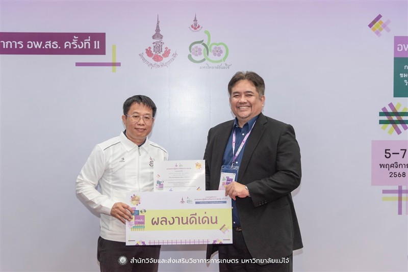 ได้รับรางวัลและเกียรติบัตรผลงานดีเด่น ภาคการนำเสนอภาคโปสเตอร์ ในงานประชุมวิชาการชมรมคณะปฏิบัติงานวิทยาการ อพ.สธ. ครั้งที่ 11 ภายใต้งานการประชุมวิชาการและนิทรรศการ ครั้งที่ 12 "ทรัพยากรไทย : หวนดูทรัพย์สิ่งสินตน" โครงการอนุรักษ์พันธุกรรมพืช อันเนื่องมาจากพระราชดำริ สมเด็จพระเทพรัตนราชสุดาฯ สยามบรมราชกุมารี (อพ.-สธ.) หัวข้อ "การสำรวจองค์ความรู้และภูมิปัญญาท้องถิ่นในพื้นที่ตำบลบ้านควน อำเภอหลังสวน จังหวัดชุมพร : เชษฐ์ ใจเพชร อุทัยวรรณ ศรีวิชัย พิริยะ กาญจนคงคา ภาวิดา รังษี และวิชชุดา เอื้ออารี"และ หัวข้อ "การพัฒนาเว็บแอปพลิเคชันเพื่อการจัดการฐานข้อมูลทรัพยากรชีวภาพชายฝั่งทะเลบริเวณแนวปะการังน้ำตื้น (หินละแม) และภูมิปัญญาท้องถิ่น อำเภอละแม จังหวัดชุมพร : อุทัยวรรณ ศรีวิชัย เชษฐ์ ใจเพชร นาตาลี อาร์ ใจเย็น วีระชัย เพชรสุทธิ์ และชาญวิทย์ ขุนทองจันทร์ " ในวันที่ 7 พฤศจิกายน 2568 ณ ห้องประชุมข้าวหอมมะลิ อาคารเฉลิมพระเกียรติสมเด็จพระเทพรัตนราชสุดา มหาวิทยาลัยแม่โจ้